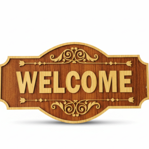 • Classic Carved Wood-Style “WELCOME” Sign (MDF)