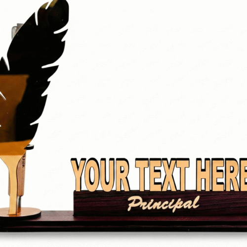 • Personalized Acrylic & MDF Desk Nameplate with Feather Pen Holder
