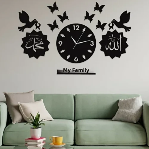 Luxury Golden Acrylic Islamic Wall Clock – Premium Calligraphy Design