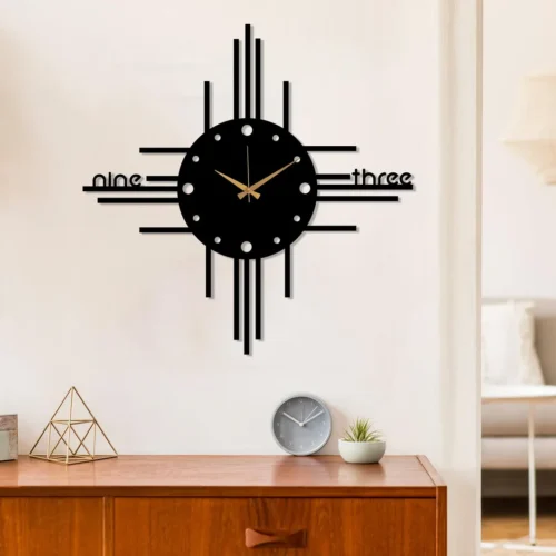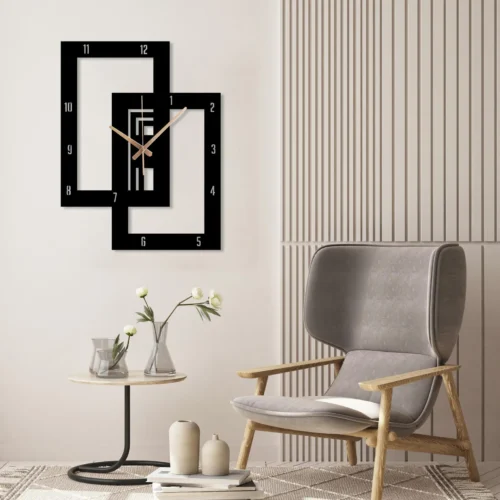 Modern Geometric MDF Wall Clock – Abstract Square Black Wall Décor