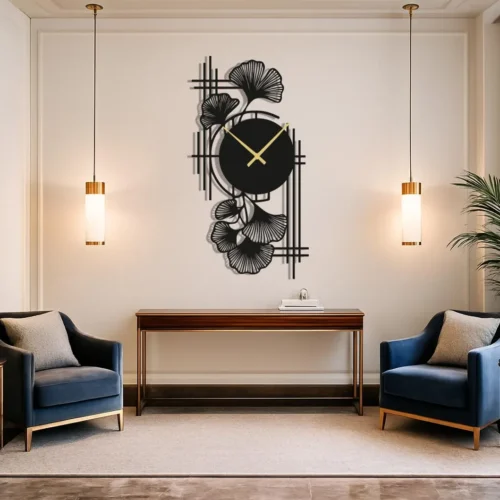 Feather Leaf MDF Wall Clock – Nature Inspired Modern Wall Art Décor