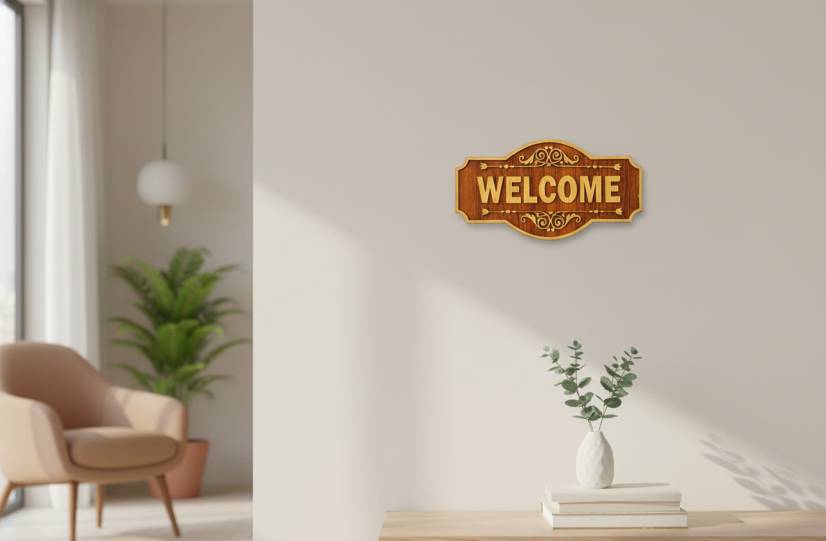 Welcome your guests with warmth and timeless charm using this Classic Carved Wood-Style “WELCOME” Sign, made entirely from high-quality MDF. Inspired by traditional carved wooden plaques, this sign adds a cozy and elegant touch to any space.