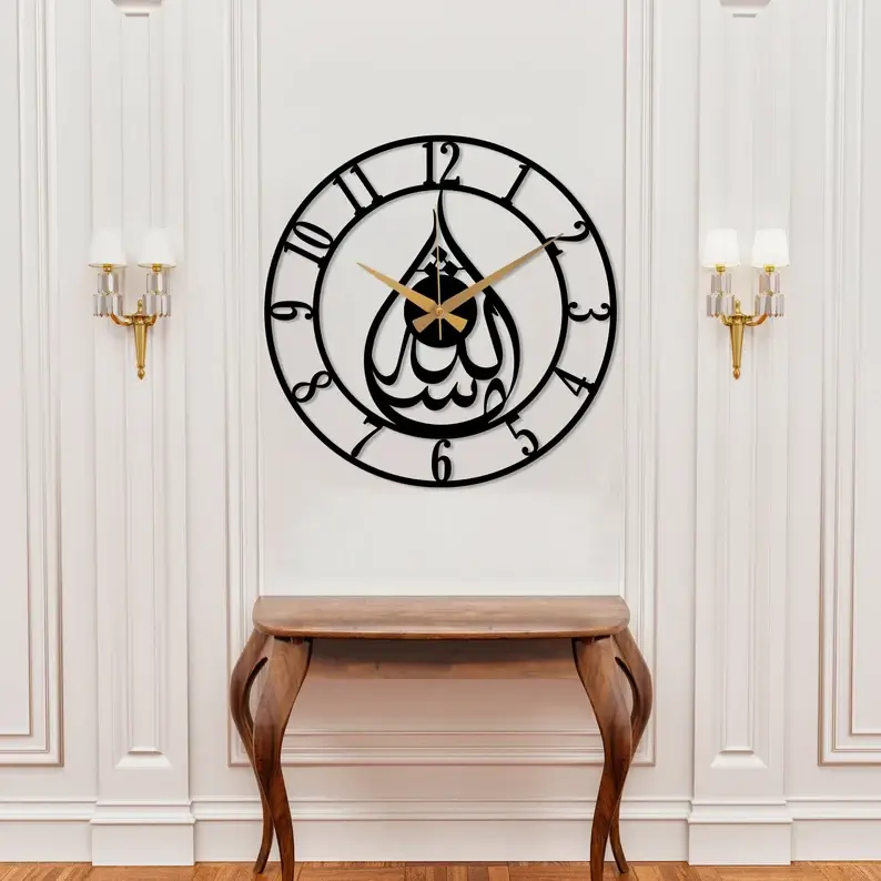 • Round Islamic wall clock with “MashAllah” calligraphy