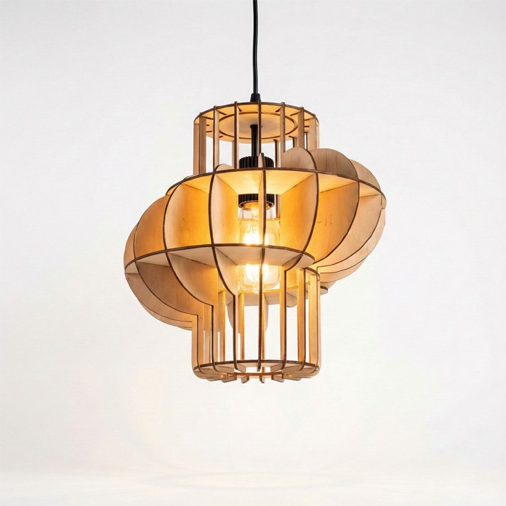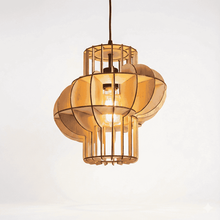 Upgrade your interior with this beautifully crafted laser-cut MDF wooden pendant lamp, designed with smooth geometric curves and vertical ribs that create a warm, ambient glow. Its sculptural 3D shape and natural wood texture make it a perfect statement piece for modern homes, cafés, studios, and office spaces.