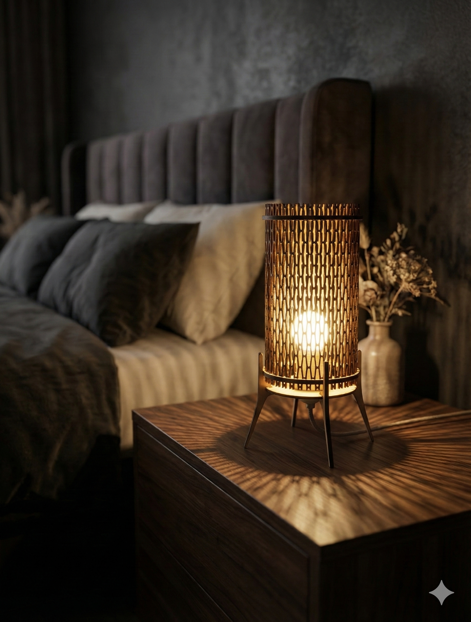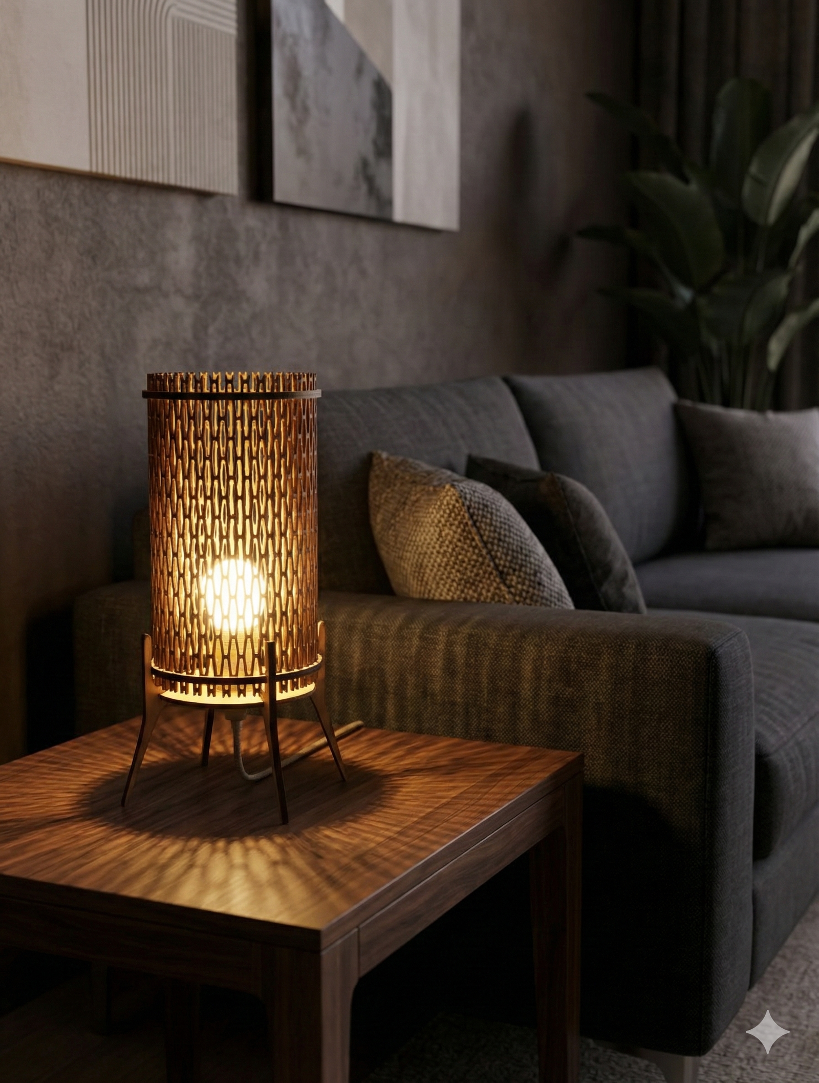 This is a ready-made, physical wooden lamp, carefully crafted and delivered to your doorstep. The Patterned Plywood Laser Cut Mood Lamp is made from premium MDF wood and features precision laser-cut patterns that create a soft, warm glow when lit. Designed for real use, this lamp adds cozy mood lighting and elegant décor to any space.
