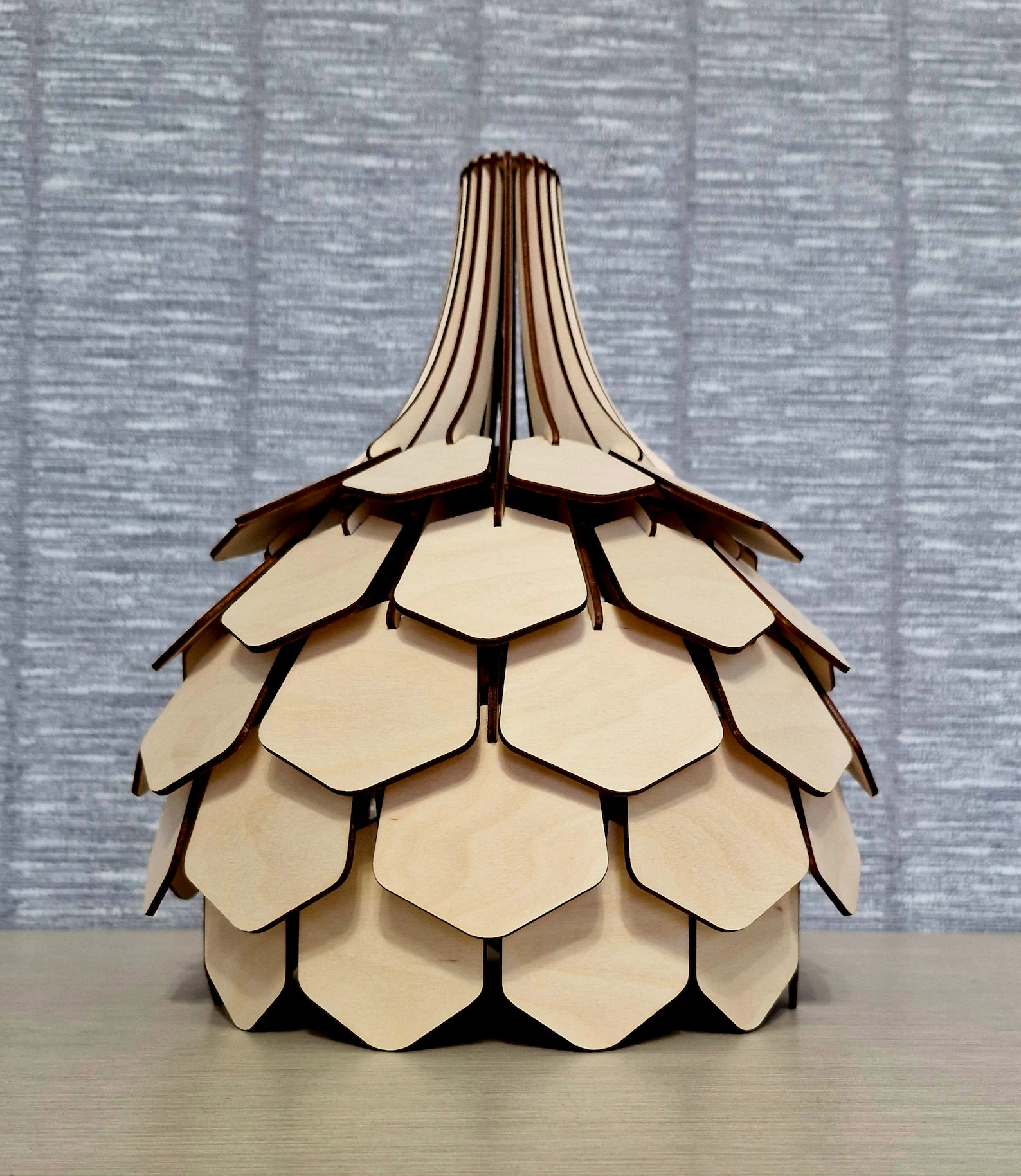 • Pine cone inspired layered wooden structure