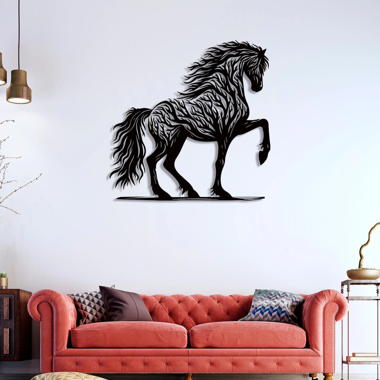 • Artistic tree and horse silhouette design